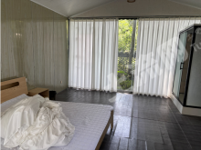 农场占地25亩,由高差不大的两个台地构成,上部包含草坪营地(6个营位)、水果采摘区(杨梅、猕猴桃、八月瓜、桃)、停车场、儿童游乐区、戏水区;下部有一个约3亩的水塘,水源来自山上的常年不断地山泉水,水塘旁有十来个钓位,30平左右的玻璃房、游泳池;两个平台之间是一片杨梅林,主要建筑集中于该区域,包含厨房、餐厅、棋牌室、会议室、3个带卫生间的独立客房。