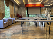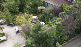 酒店临河依山而建,占地3500平,按花园酒店标准设计、装修,家具家电齐备,水电气都通;主体建筑为占地300多平的一栋三层楼,建筑面积1000余平,其中一楼为接待大厅、茶餐厅、棋牌包间,花园全景茶室;二楼三楼各8间带独立卫生间的客房(其中标准间14间,大床房2间)。外面的花园成长条形,假山、喷泉、休闲长廊高低错落、搭配适宜,花园的端头有一片竹林,有一个约80平的全景会议室。